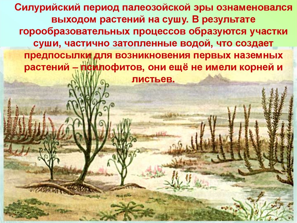 Силурийский период палеозойской эры ознаменовалсявыходом растений на сушу. В результате