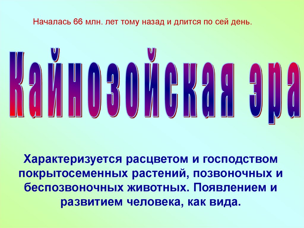 Началась 66 млн. лет тому назад и длится по сей день.Характеризуется расцветом и господством