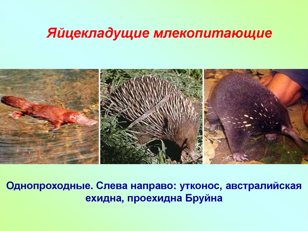 Яйцекладущие млекопитающиеОднопроходные. Слева направо: утконос, австралийская