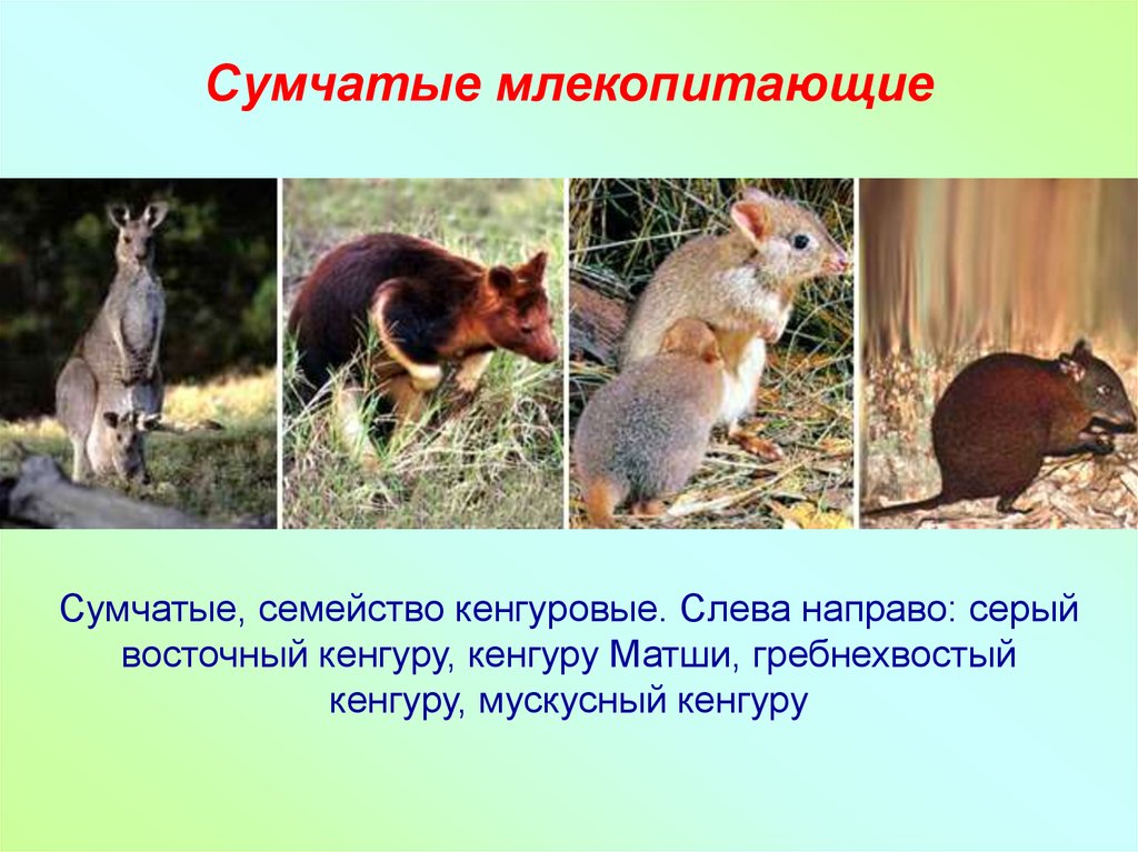 Сумчатые млекопитающиеСумчатые, семейство кенгуровые. Слева направо: серый