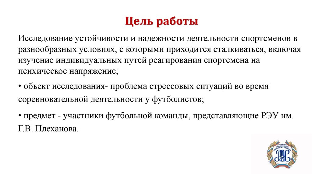 Влияние стрессовых ситуаций на спортсменов футбольной команды РЭУ им. Г. В. Плеханова