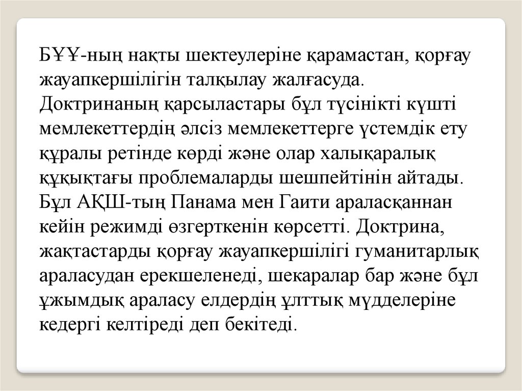 Доктринаның қарсыластары бұл түсінікті күшті