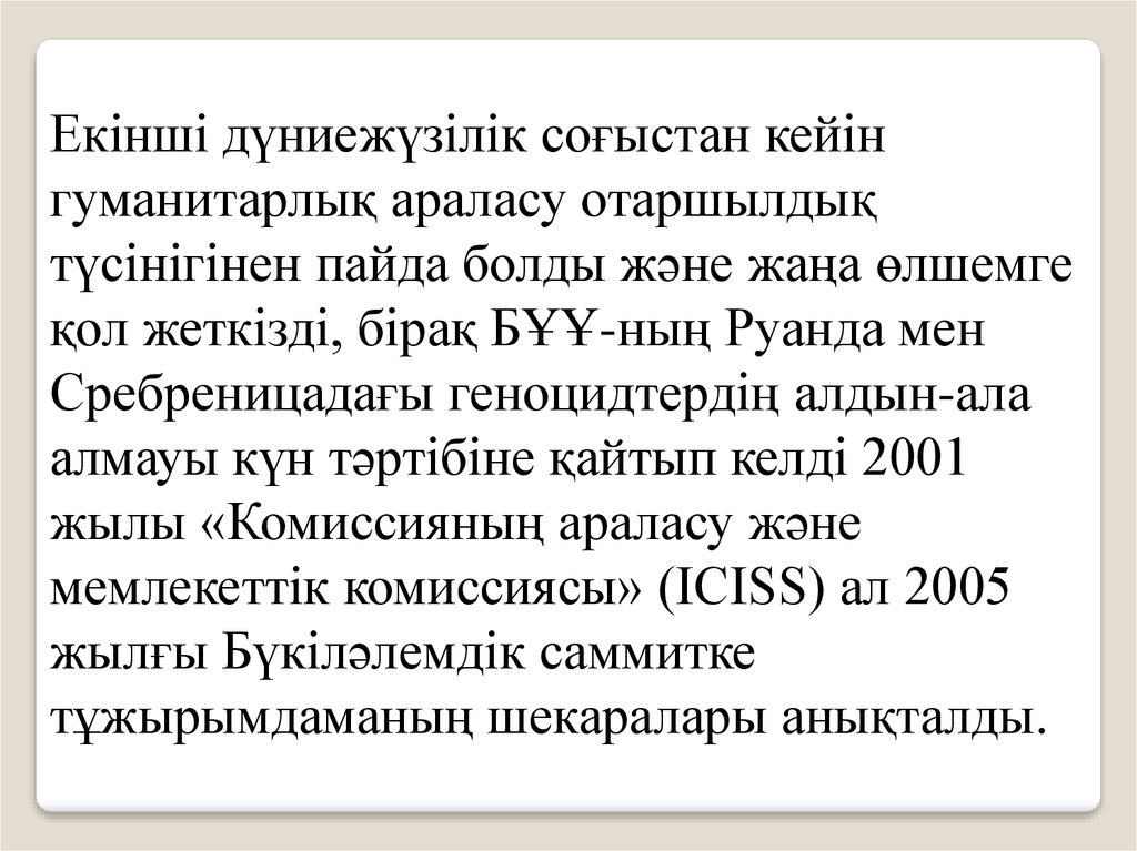ICISS баяндамасында белгіленгенжауаптылыққа негізделген егемендік
