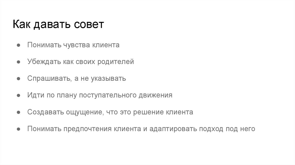 Как давать совет● Понимать чувства клиента