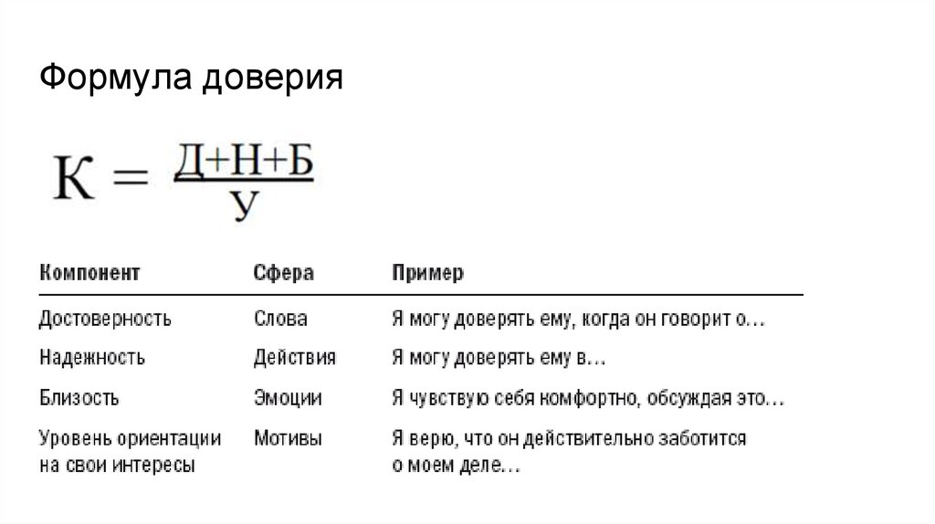 Развитие доверия1. Вовлечение