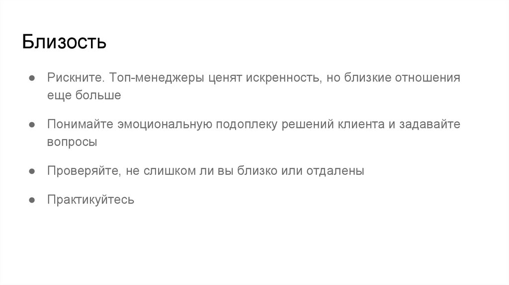 Близость● Рискните. Топ-менеджеры ценят искренность, но близкие отношения