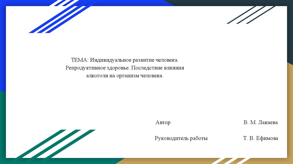 Индивидуальное развитие человека. Репродуктивное здоровье. Последствие влияния алкоголя на организм человека