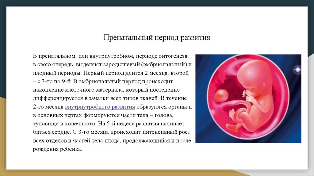 Пренатальный период развитияВ пренатальном, или внутриутробном, периоде онтогенеза,