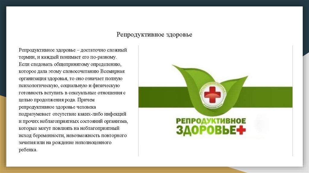 Репродуктивное здоровьеРепродуктивное здоровье – достаточно сложный