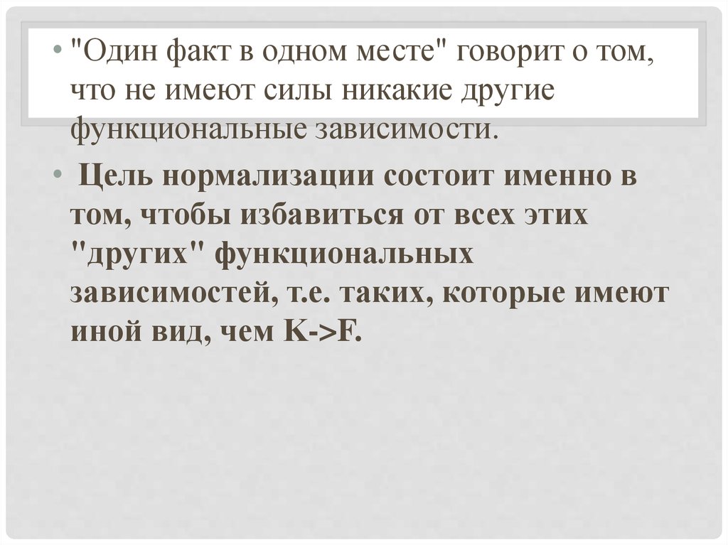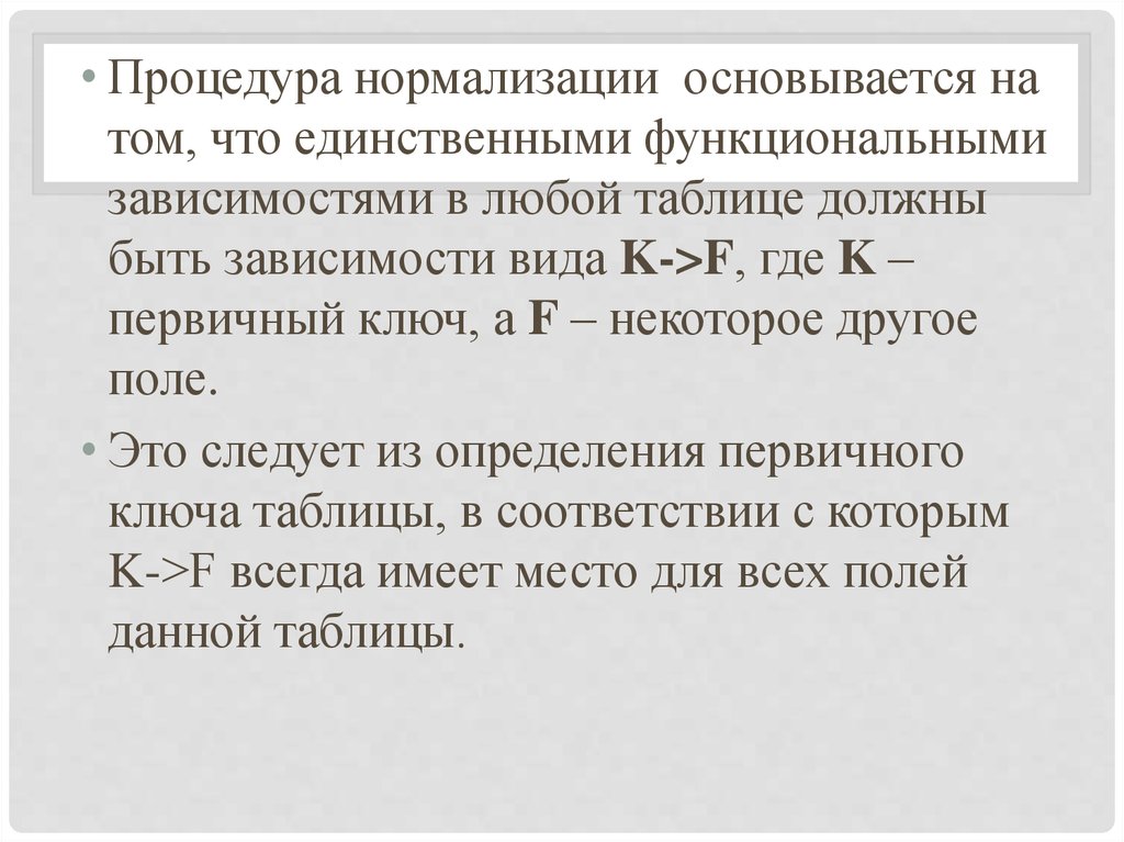 • Заменить T(K,F1,F2), первичный ключ К, ФЗ
