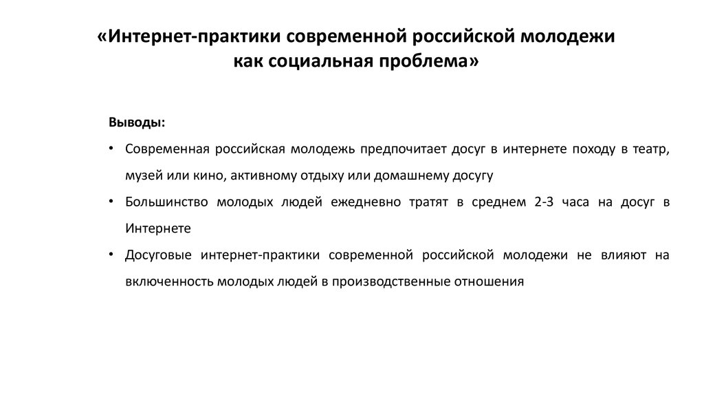 • Досуговые интернет-практики современной российской молодежи не влияют на