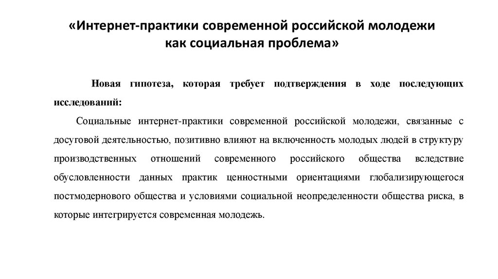 «Интернет-практики современной российской молодежикак социальная проблема»