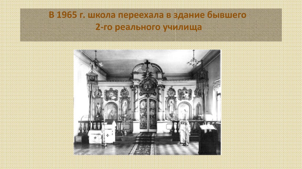 В 1965 г. школа переехала в здание бывшего2-го реального училища