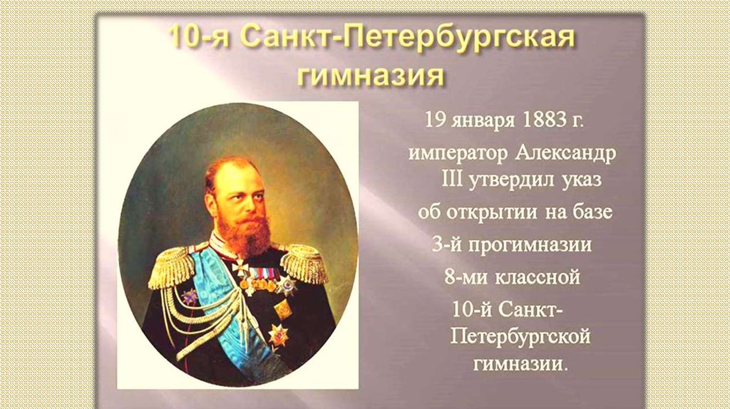 4. 1871 Александр II утвердил решение об открытии 3-й прогимназии в районе Измайловского полка.