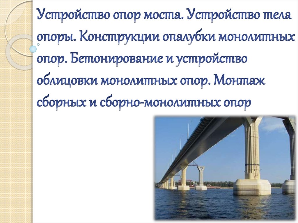 Устройство опор моста. Устройство тела опоры. Конструкции опалубки монолитных опор. Монтаж сборных и сборно-монолитных опор