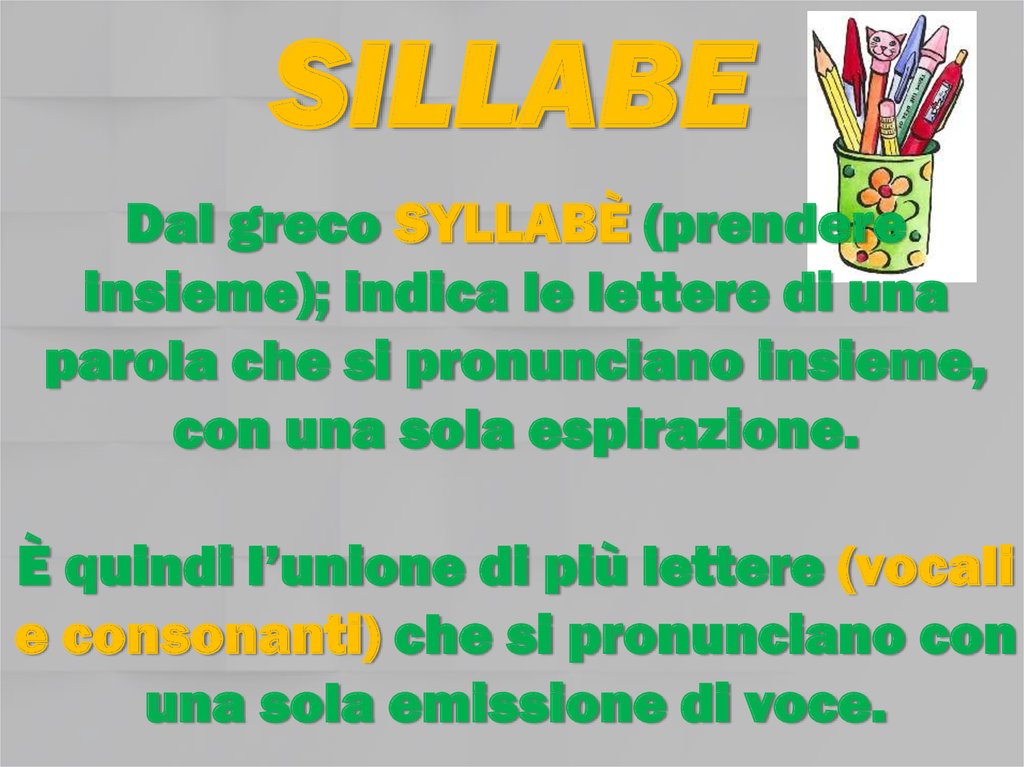 Sillabe. Dal greco syllabè (prendere insieme)
