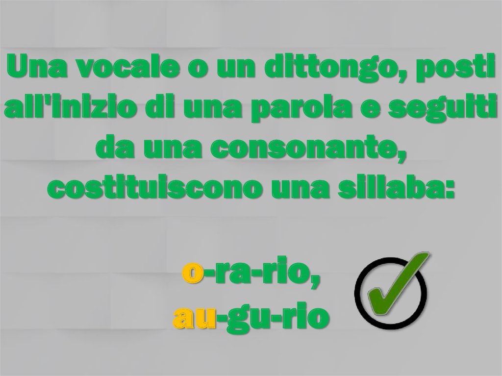 Una vocale o un dittongo, postiall'inizio di una parola e seguiti