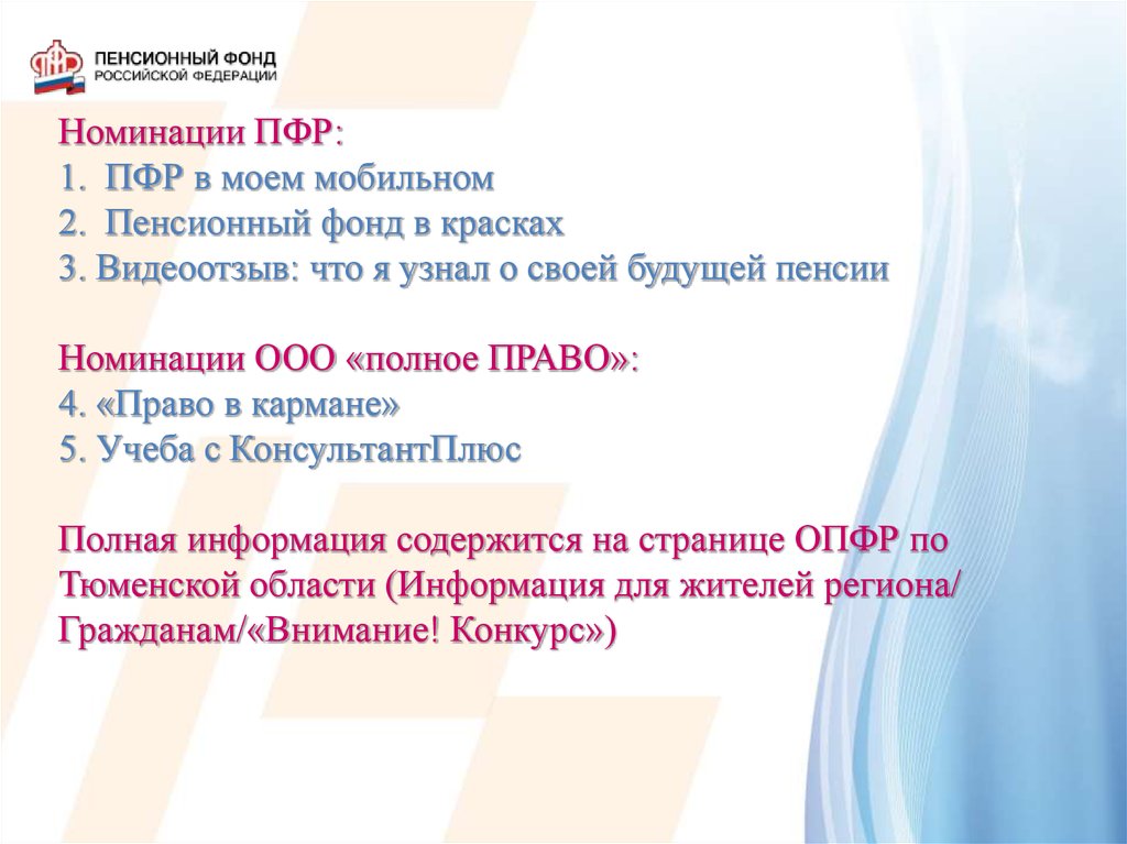 Номинации ПФР:1. ПФР в моем мобильном