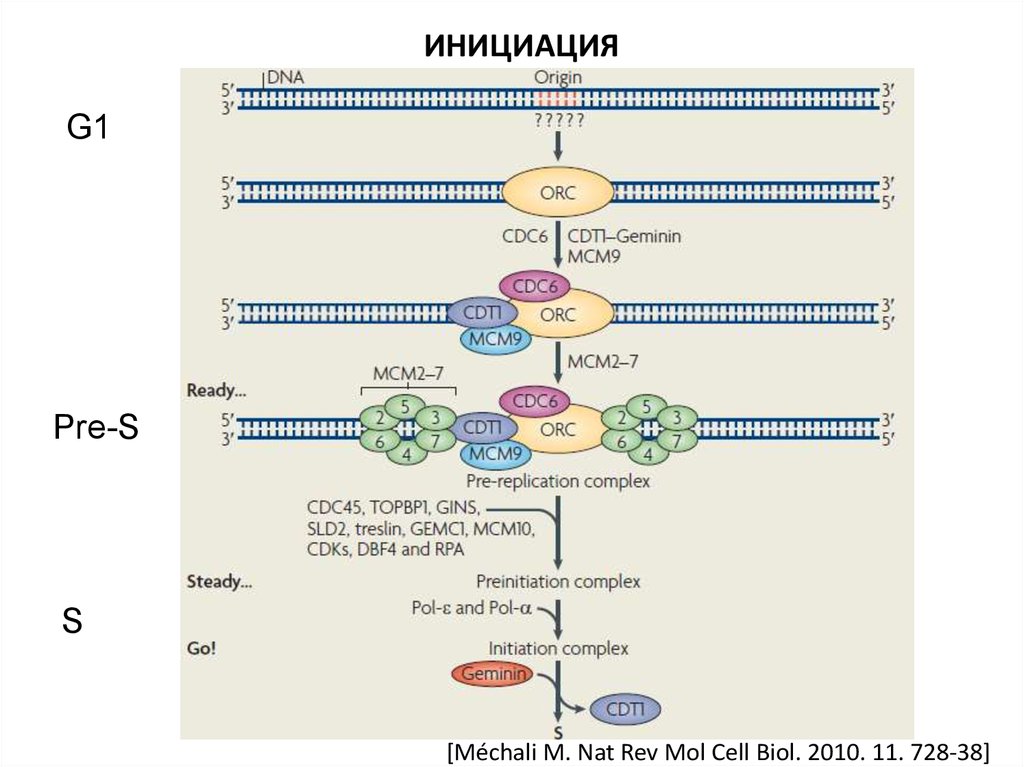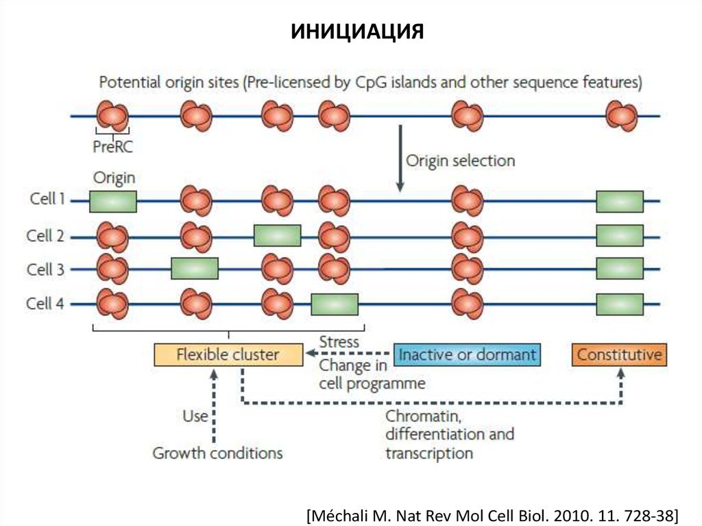 ИНИЦИАЦИЯ[Méchali M. Nat Rev Mol Cell Biol. 2010. 11. 728-38]