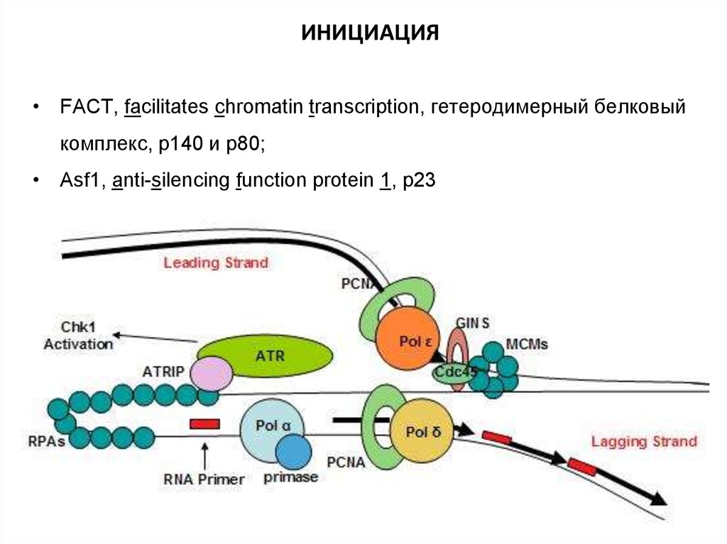 ИНИЦИАЦИЯ• FACT, facilitates chromatin transcription, гетеродимерный белковый