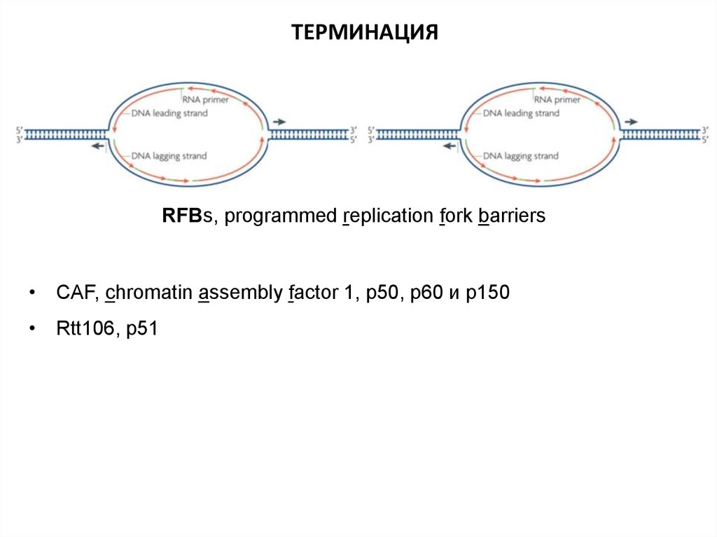 ТЕРМИНАЦИЯRFBs, programmed replication fork barriers
