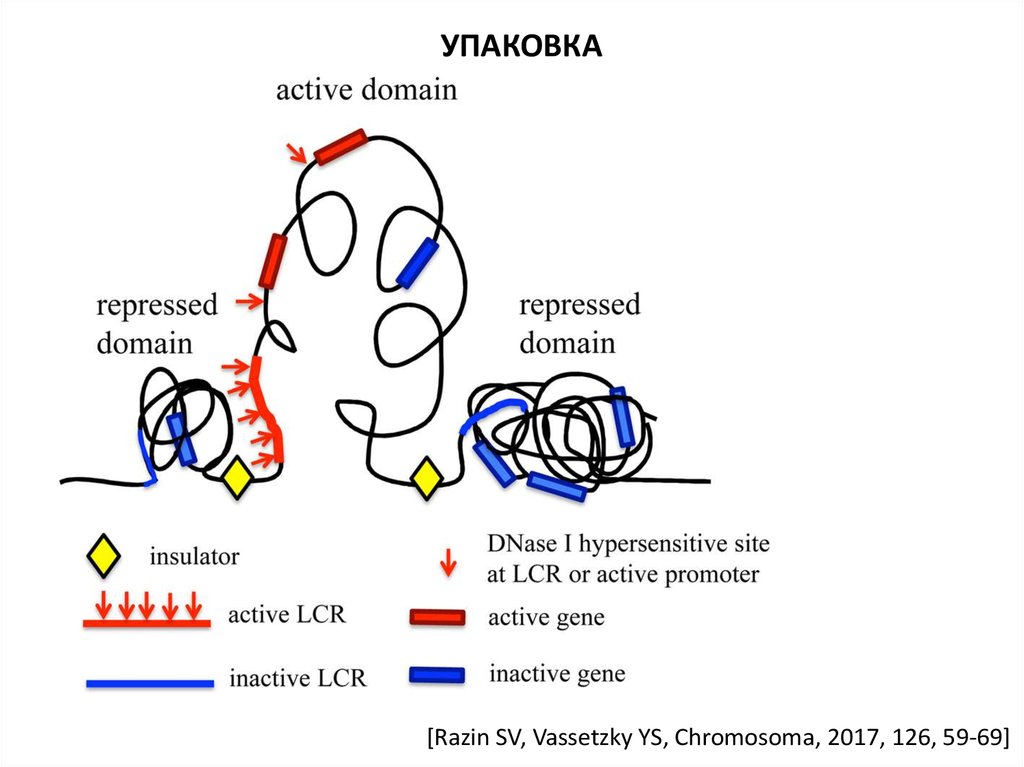 УПАКОВКА[Razin SV, Vassetzky YS, Chromosoma, 2017, 126, 59-69]
