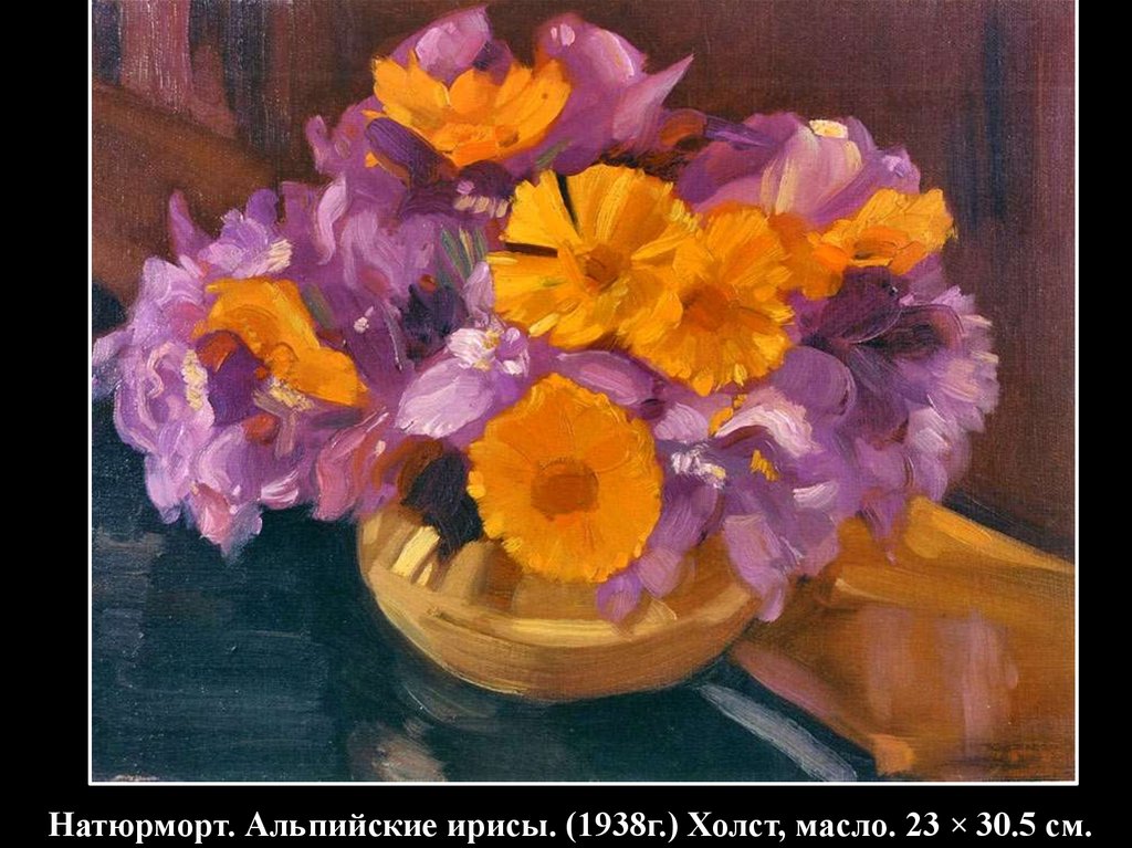 Натюрморт. Альпийские ирисы. (1938г.) Холст, масло. 23 × 30.5 см.9.