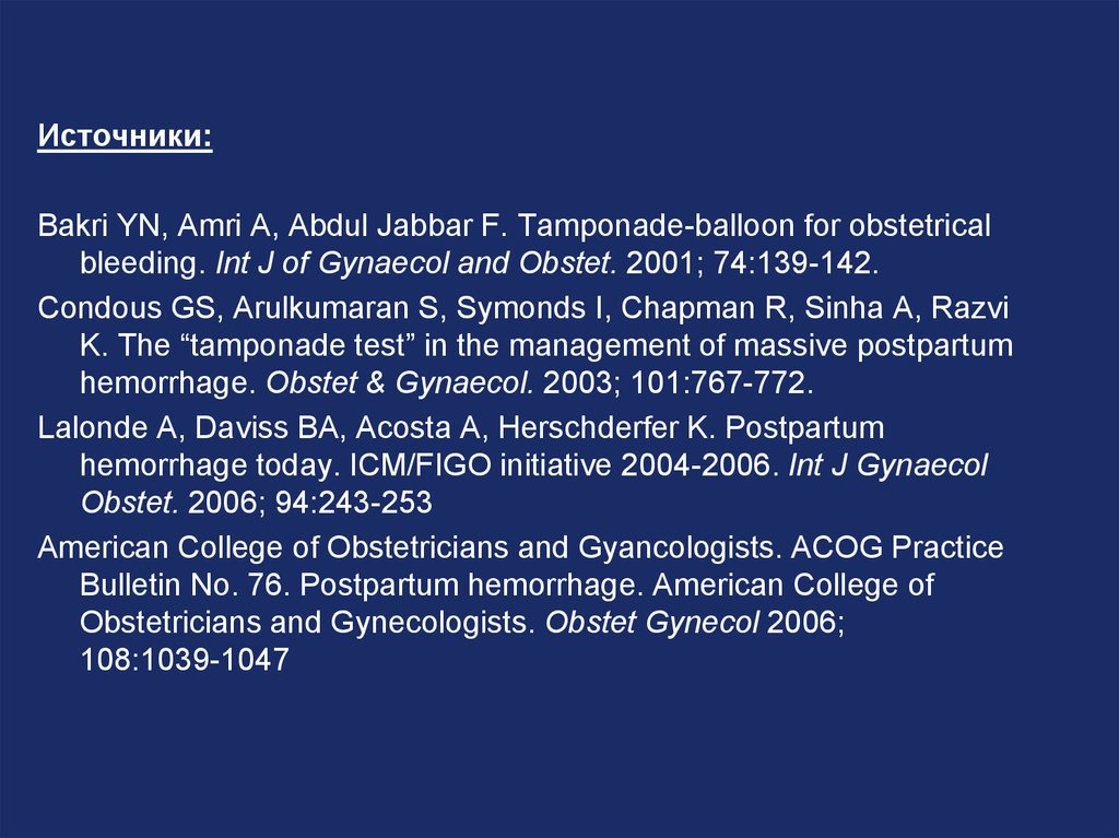 Источники:Bakri YN, Amri A, Abdul Jabbar F. Tamponade-balloon for obstetrical
