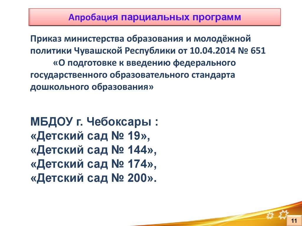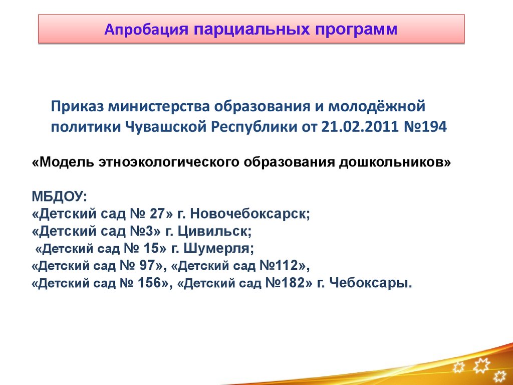 Апробация парциальных программПриказ министерства образования и молодёжной