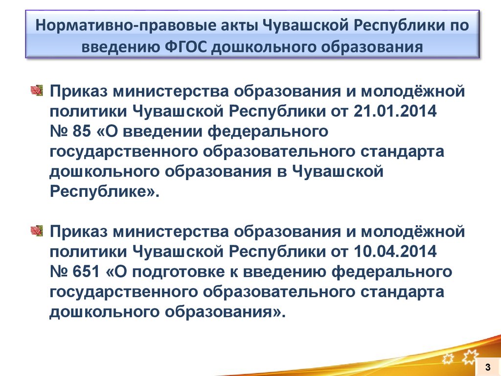 Нормативно-правовые акты Чувашской Республики повведению ФГОС дошкольного образования