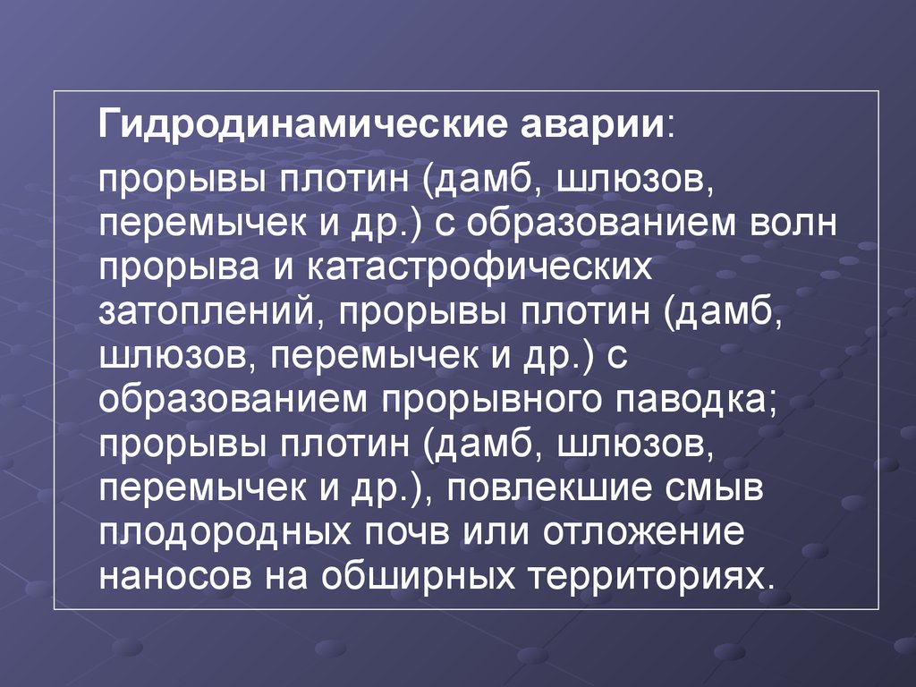 Гидродинамические аварии:прорывы плотин (дамб, шлюзов,