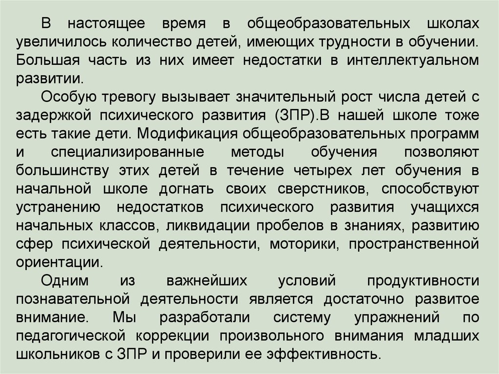Аттестационная работа. Педагогическая коррекция произвольного внимания младших школьников с ЗПР на уроках русского языка