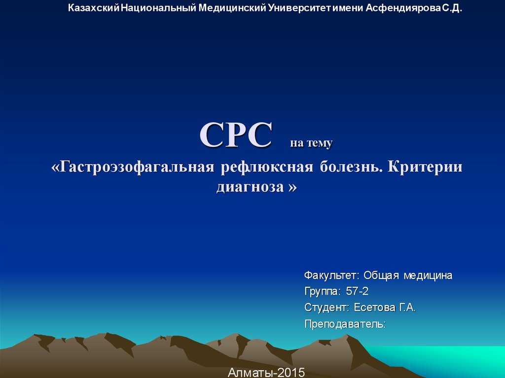 1. СРС на тему «Гастроэзофагальная рефлюксная болезнь. Критерии диагноза »