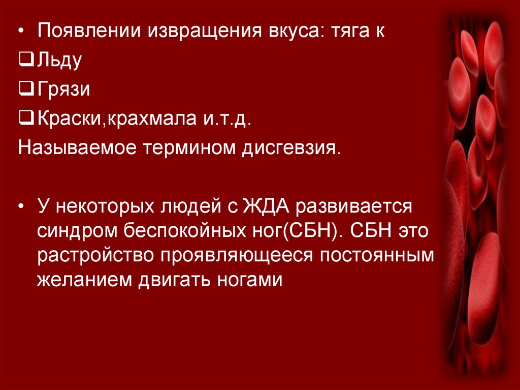 • Появлении извращения вкуса: тяга кЛьду