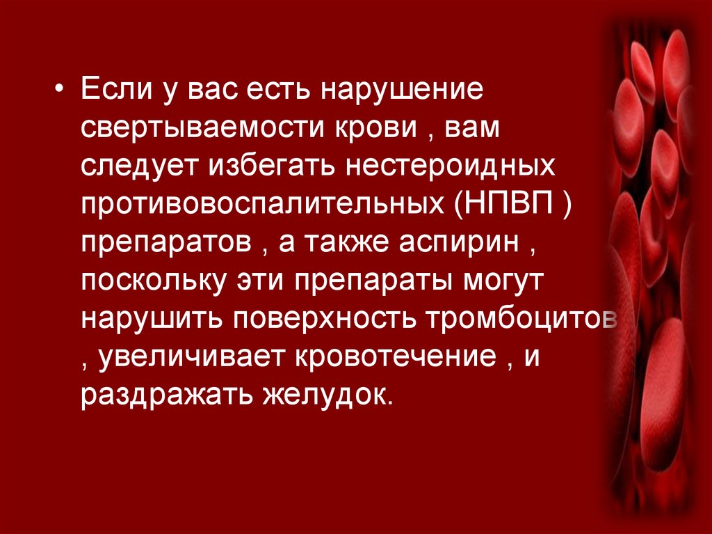 • Если у вас есть нарушениесвертываемости крови , вам