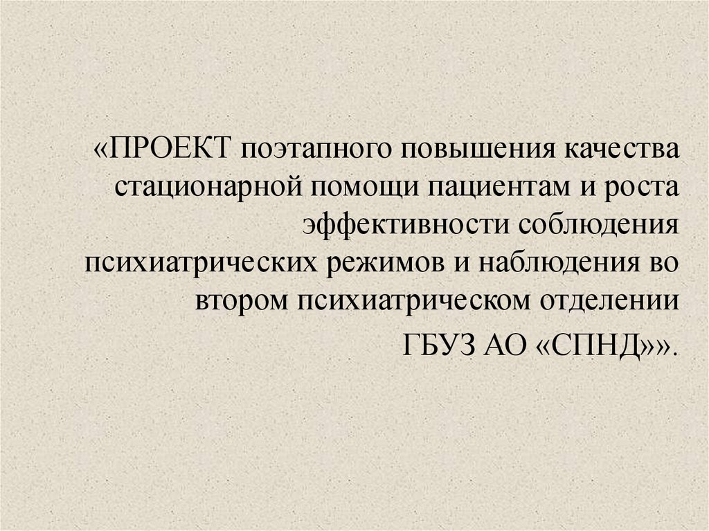 «ПРОЕКТ поэтапного повышения качествастационарной помощи пациентам и роста