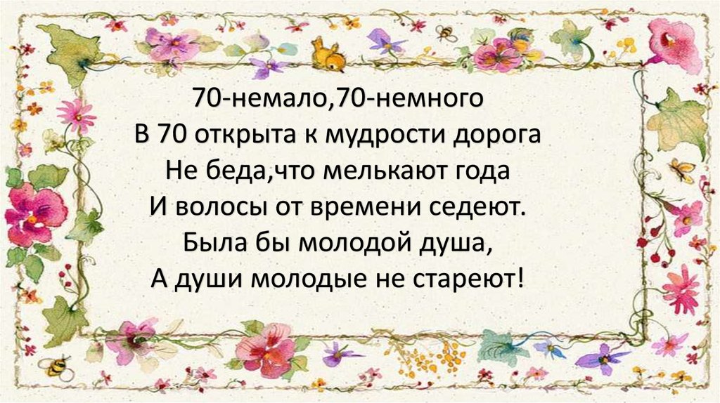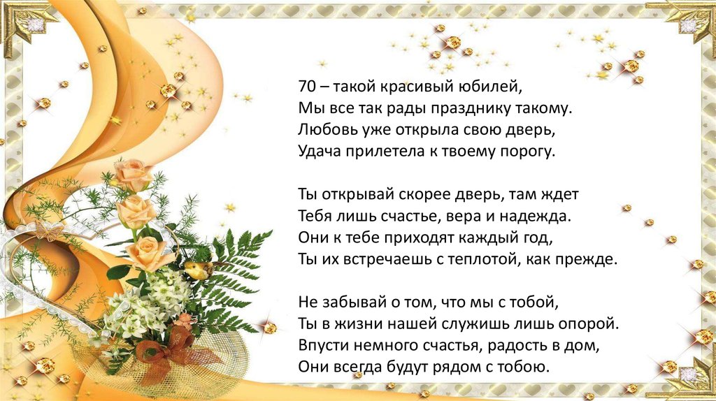 70 – такой красивый юбилей,Мы все так рады празднику такому.