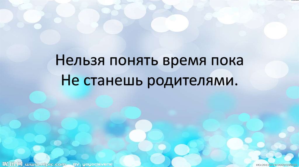 Нельзя понять время покаНе станешь родителями.