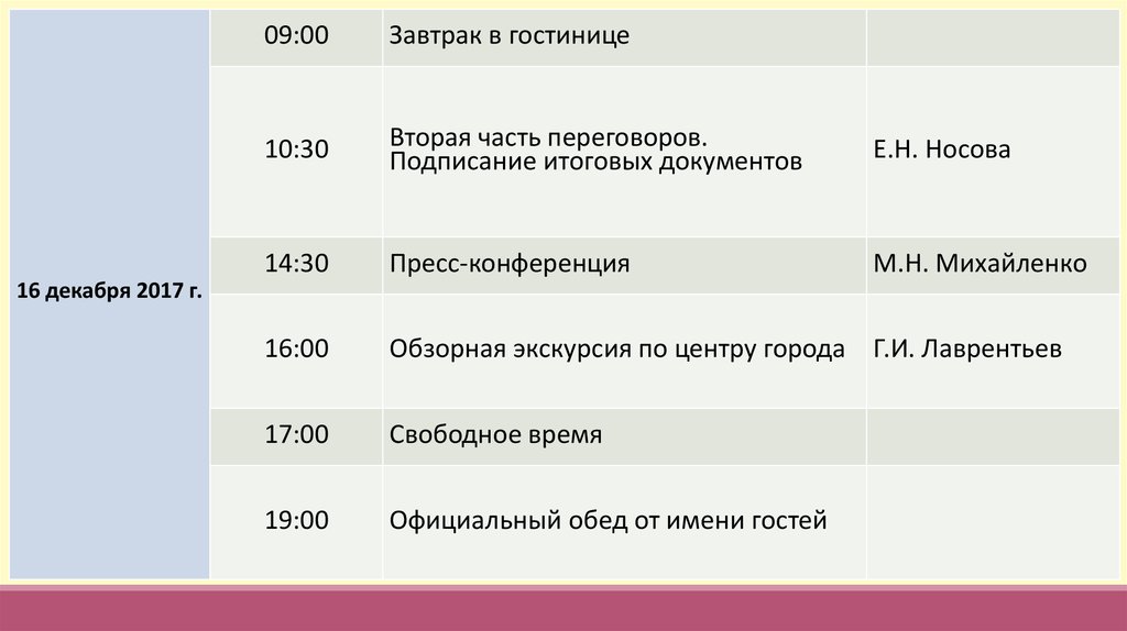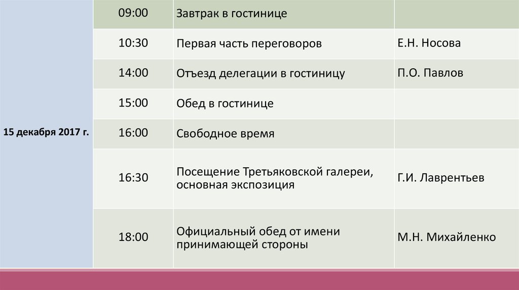 Глава делегации (президент компании) – Франц БургмайерМенеджер по финансовым вопросам (супруга президента компании) –