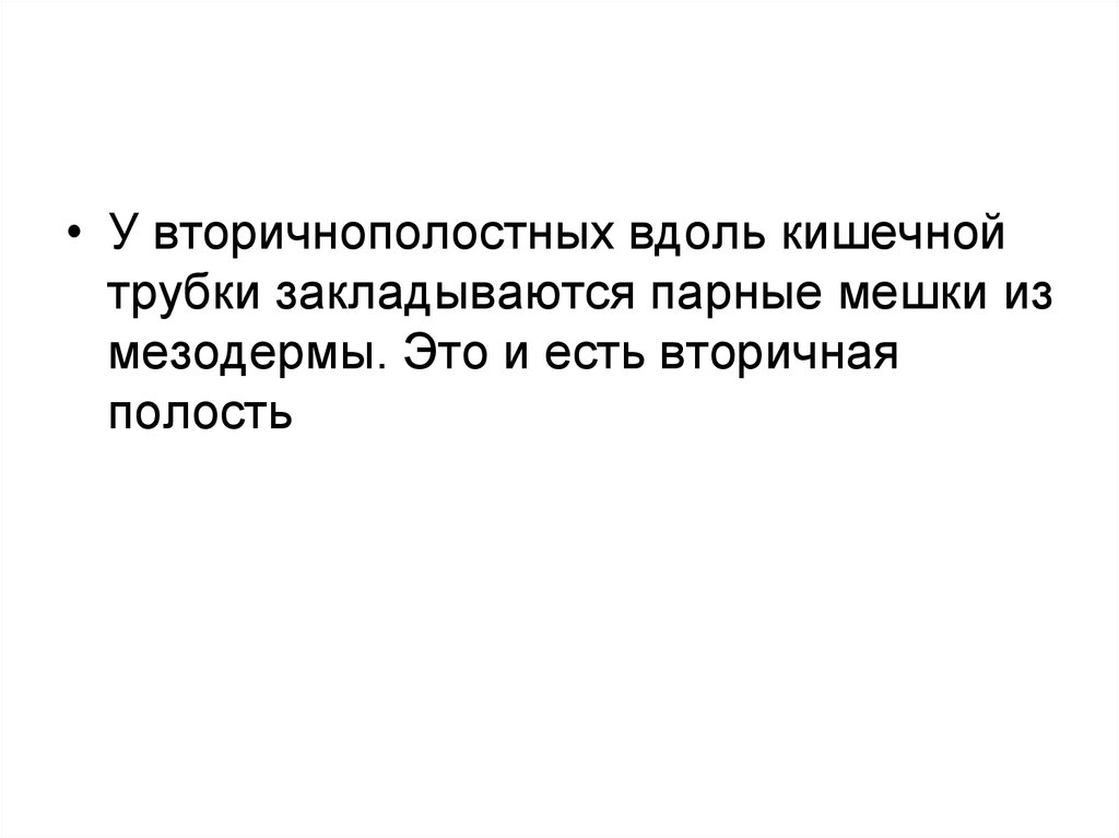 • У вторичнополостных вдоль кишечнойтрубки закладываются парные мешки из