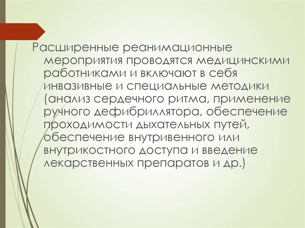 Расширенные реанимационныемероприятия проводятся медицинскими