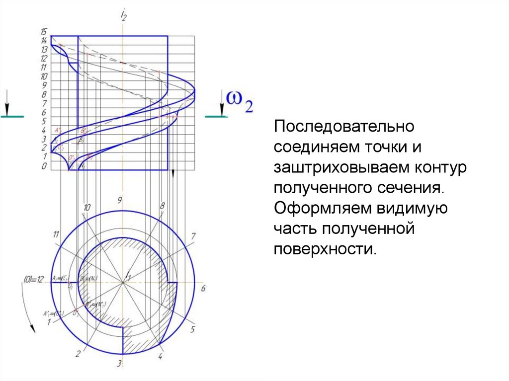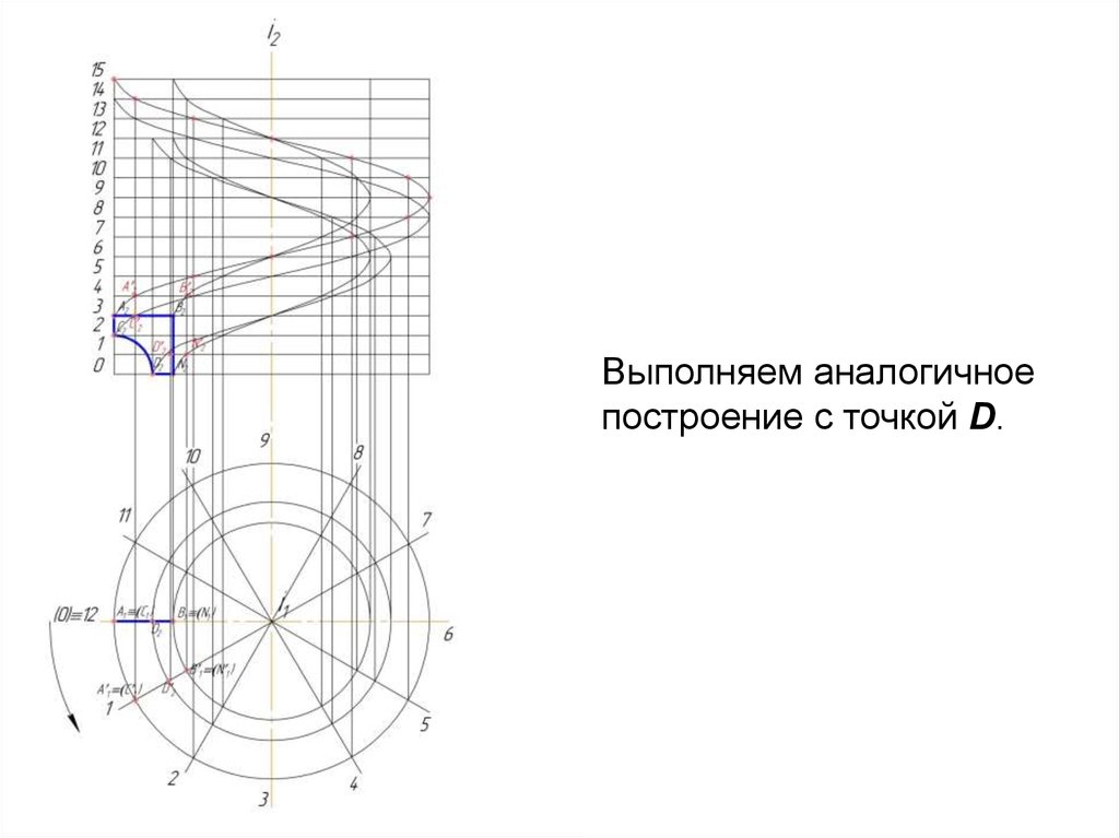 4. Окружности горизонтальной проекции разделить радиусами на n (12 или 16) равных частей