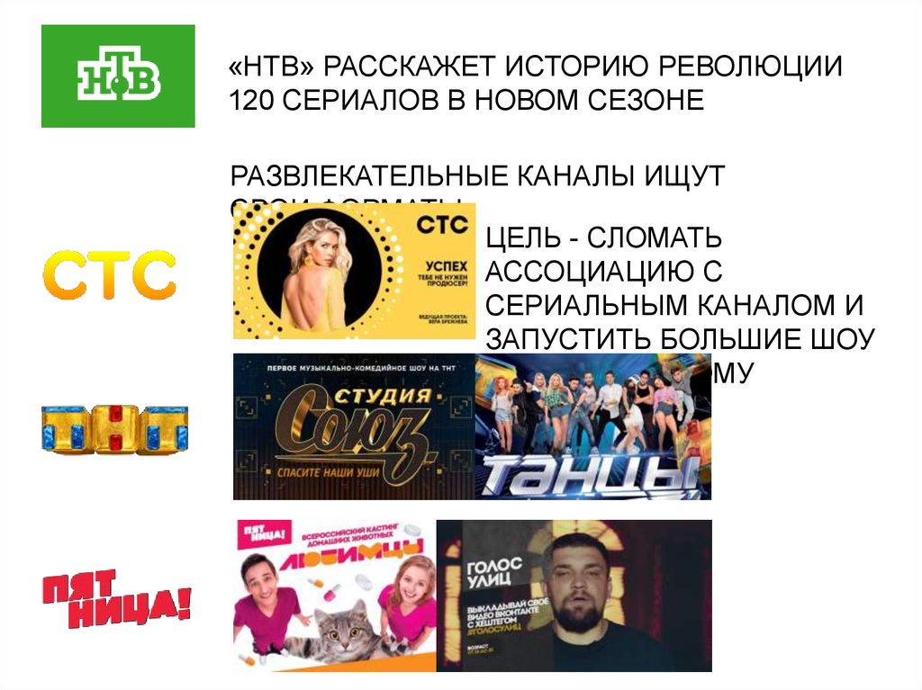 КОНТЕНТА: «ПЯТЫЙ КАНАЛ», НТВ, «КАНАЛ Ю», «РОССИЯ