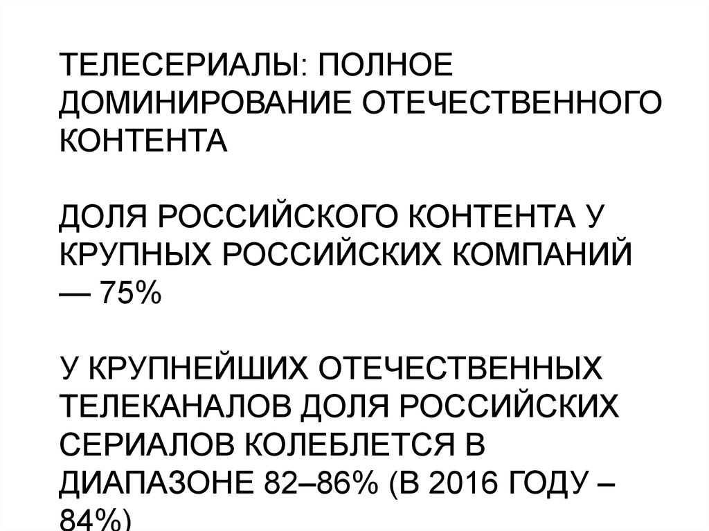 ТЕЛЕСЕРИАЛЫ: ПОЛНОЕДОМИНИРОВАНИЕ ОТЕЧЕСТВЕННОГО