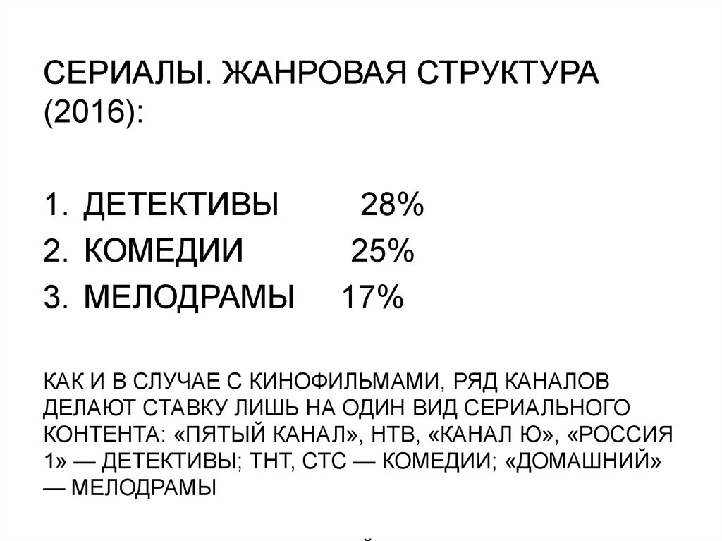 СЕРИАЛЫ. ЖАНРОВАЯ СТРУКТУРА(2016):