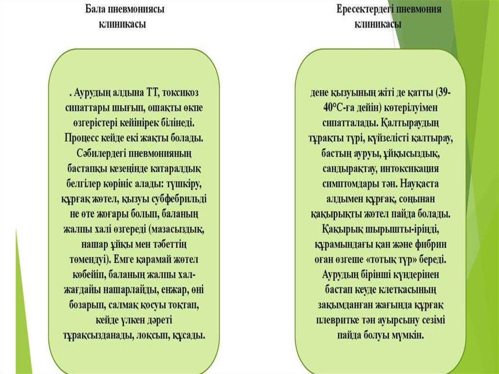 Пневмония. Пневмония дағы жасқа байланысты ерекшеліктер