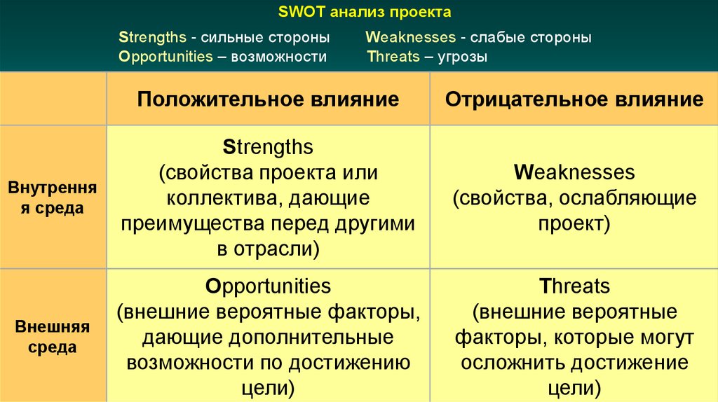 SWOT анализ проектаStrengths - сильные стороны