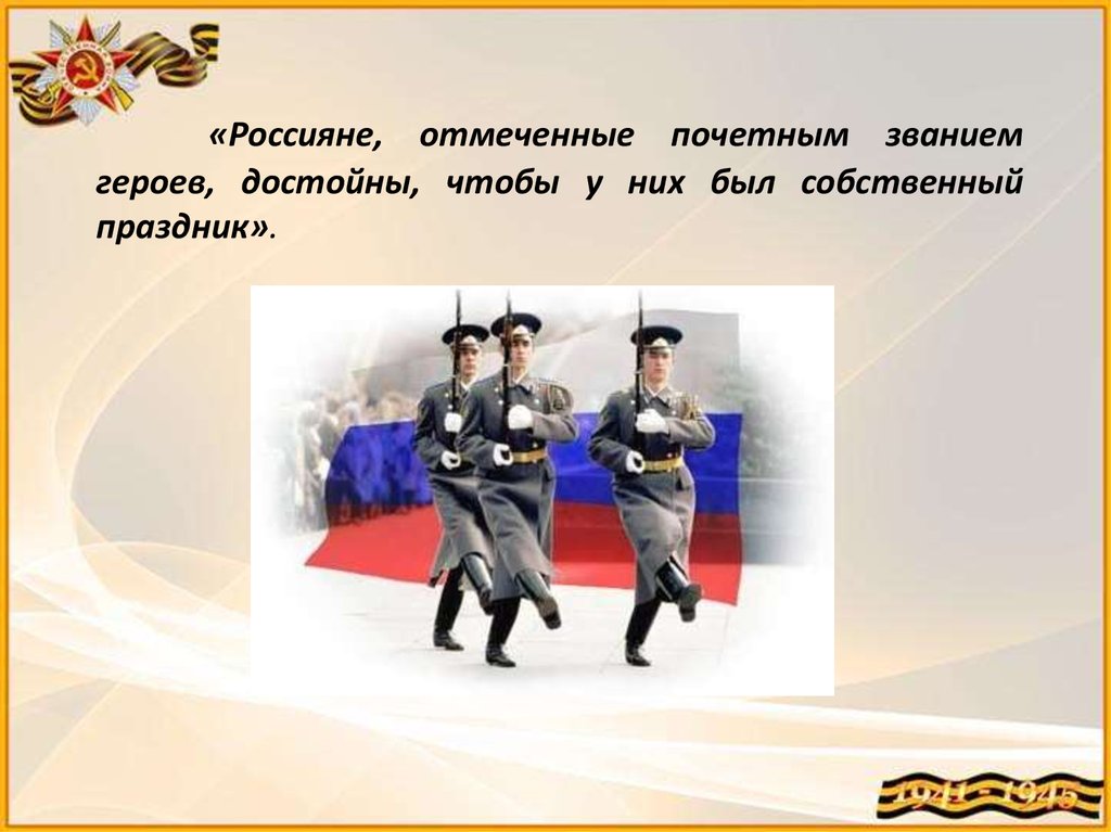 «Россияне, отмеченные почетным званиемгероев, достойны, чтобы у них был собственный
