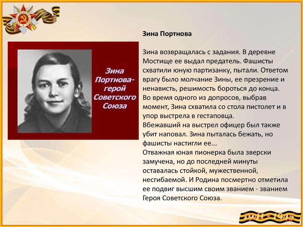 Зина ПортноваЗина возвращалась с задания. В деревне