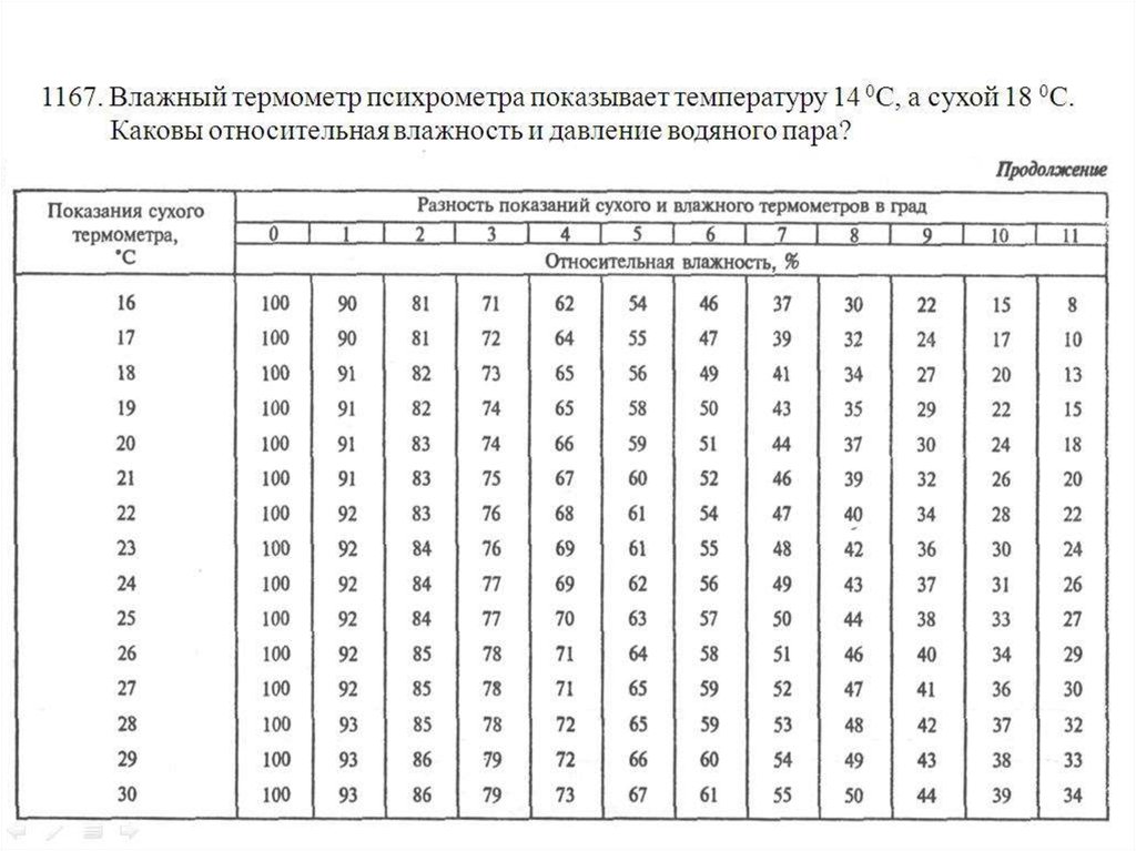 1163. На море при температуре воздуха 25 0С относительная влажность равна 95%.